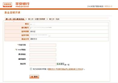 2.1 進(jìn)入平安銀行身份驗證頁面,并簽署《通聯(lián)支付-平安銀行基金網(wǎng)上直銷扣款第三方協(xié)議》